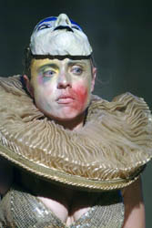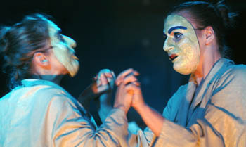 C.J.: Korábban is gyakran kacsintgattam az olyan kortárs művek felé, amelyek történetalapúak ugyan, mégis szabadabban közelítik meg az elmondanivalót. Úgy gondolom, hogy nagy hangsúlyt helyezek a képiségre is, ezért sokszor nem is annyira a történetek fontosak, hanem a benyomások, egyfajta álomszerűség, az atmoszféra. Az Epopteiával nem kell szigorúan megfelelnünk a közönségigénynek, ezért saját kedvünkre használhatjuk a különböző szövegeket. Az Orál morál végső soron abból az igényből született, hogy színházelméleti szövegeket egyfajta szakmai moralitásként kezeljünk, számba vegyünk olyan alapeszméket, amelyek sokáig konvencionalizálták a gondolkodásunkat, s megvizsgáljuk, vajon működnek-e még. És valóban: egyes meghatározások már nevetségesnek vagy elavultnak tűnnek. Azért vettünk alapul egy vidéki színészházaspárt, hogy a középszerűség felől elinduljunk mind a magas, mind a mély irányába. Az előadásban Sztanyiszlavszkijtól és Majakovszkijtól egész Wilsonig vezet az út, közben érintjük a lengyeleket, Grotowskit és Kantort, az oroszok közül foglalkozunk még Mejerholddal, a „keleti oldal” mellett pedig ott van Brook és Barba is. Az előadásnak egyelőre csak az első része van kész: összesen három témát szeretnénk érinteni, az előbemutatóig pedig másfélnek jártunk a végére.